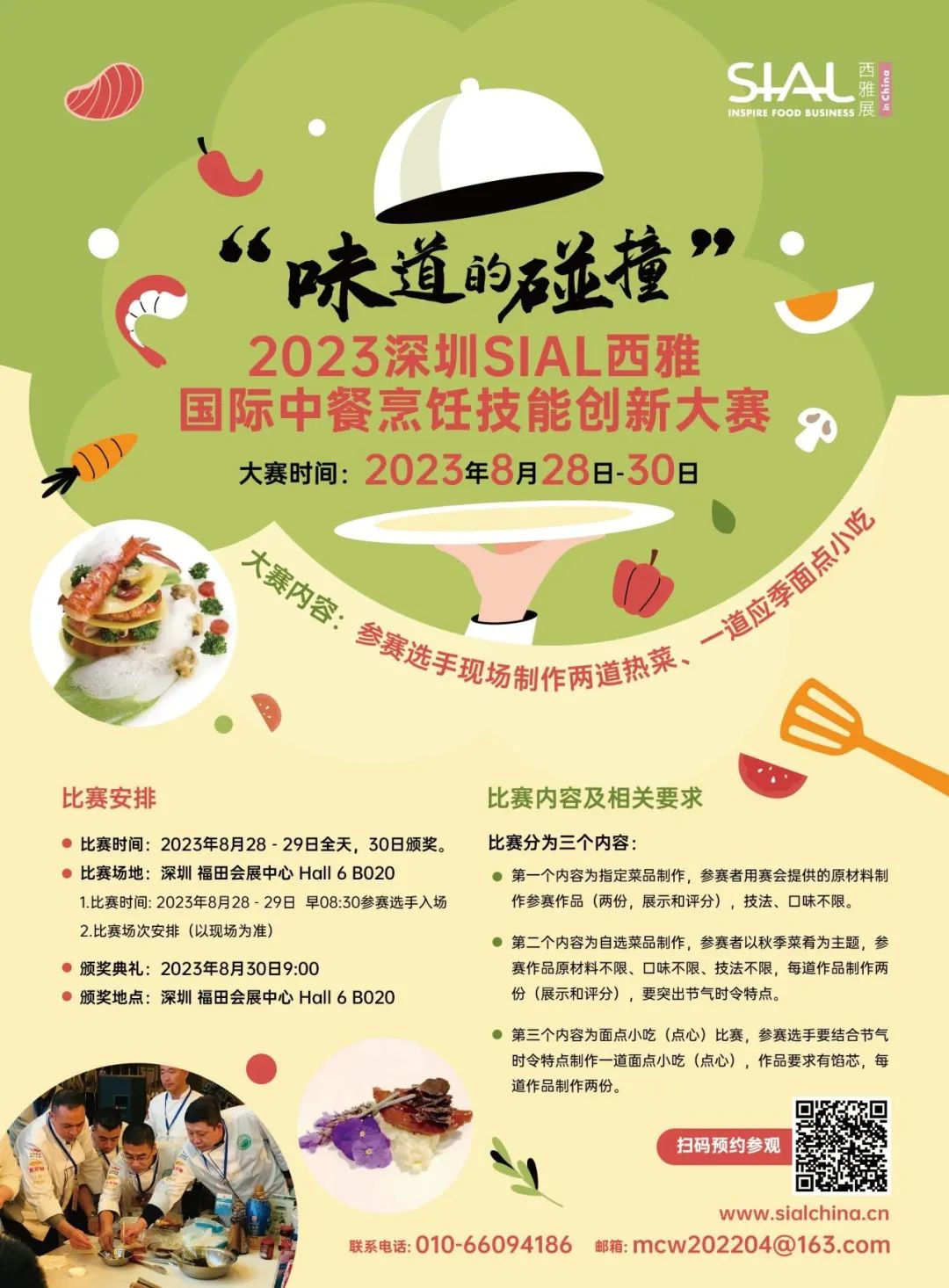 為倡導(dǎo)創(chuàng)新發(fā)展,滿足消費(fèi)者不斷升級的口味需求,助推中餐業(yè)高質(zhì)量發(fā)展,在8月28日—30日召開的SIAL西雅展(深圳)將隆重舉行“味道的碰撞”-2023深圳SIAL西雅國際中餐烹飪技能創(chuàng)新大賽。