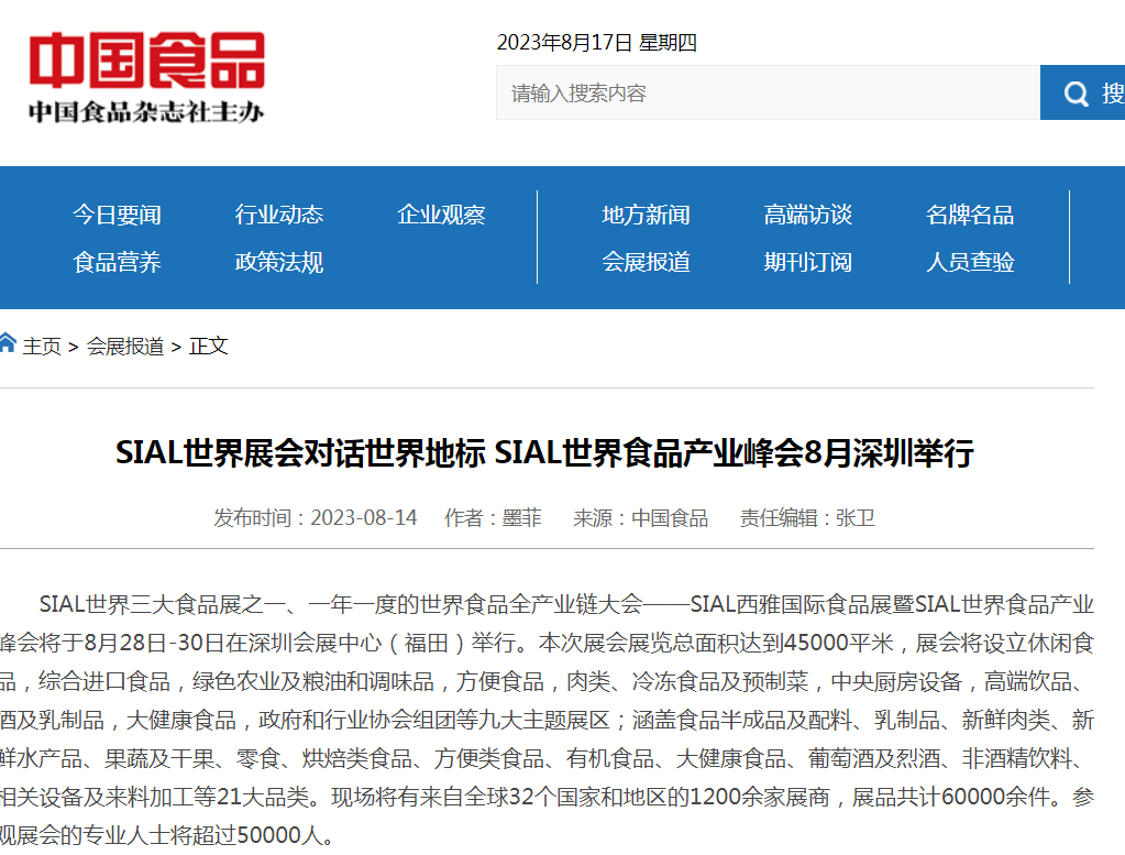 人民網等百家主流媒體競相報道 SIAL世界食品產業峰會強勢出圈