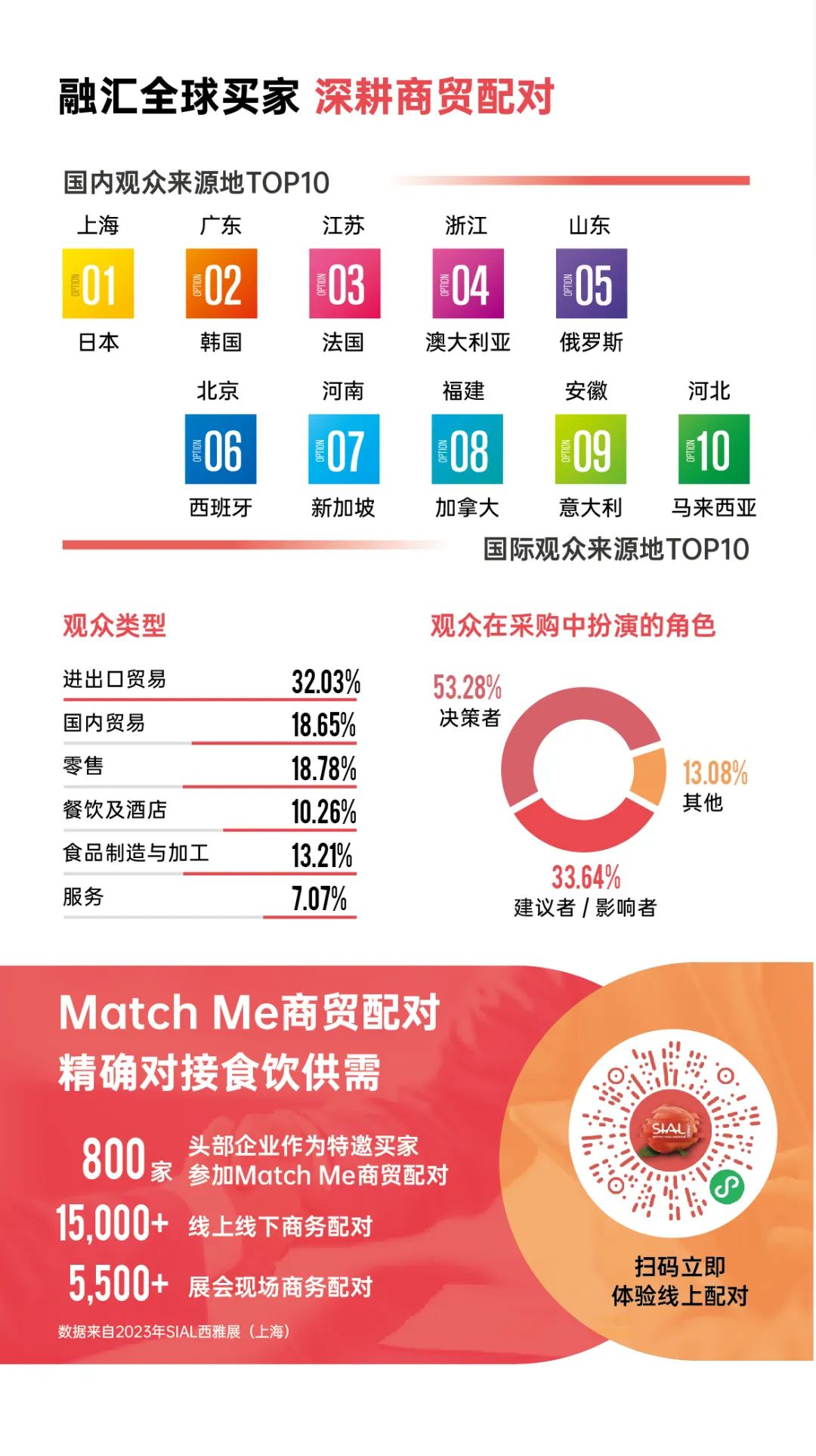 隨著2023 SIAL西雅國際食品展(深圳)的成功舉辦,SIAL西雅展在中國華東、華南兩大市場互為犄角,已成功融匯了中國經濟最富有活力地區的全品類食飲專業買家庫。在大力發展數字化的當下,SIAL西雅展依托SIAL Network強大的數據資源、精準營銷策略,通過SIAL西雅展商機在線、展商名錄、產品名錄、供需對接等系列行之有效的措施,最大效能服務參展商,提振食飲行業活力,促進世界商貿流通。