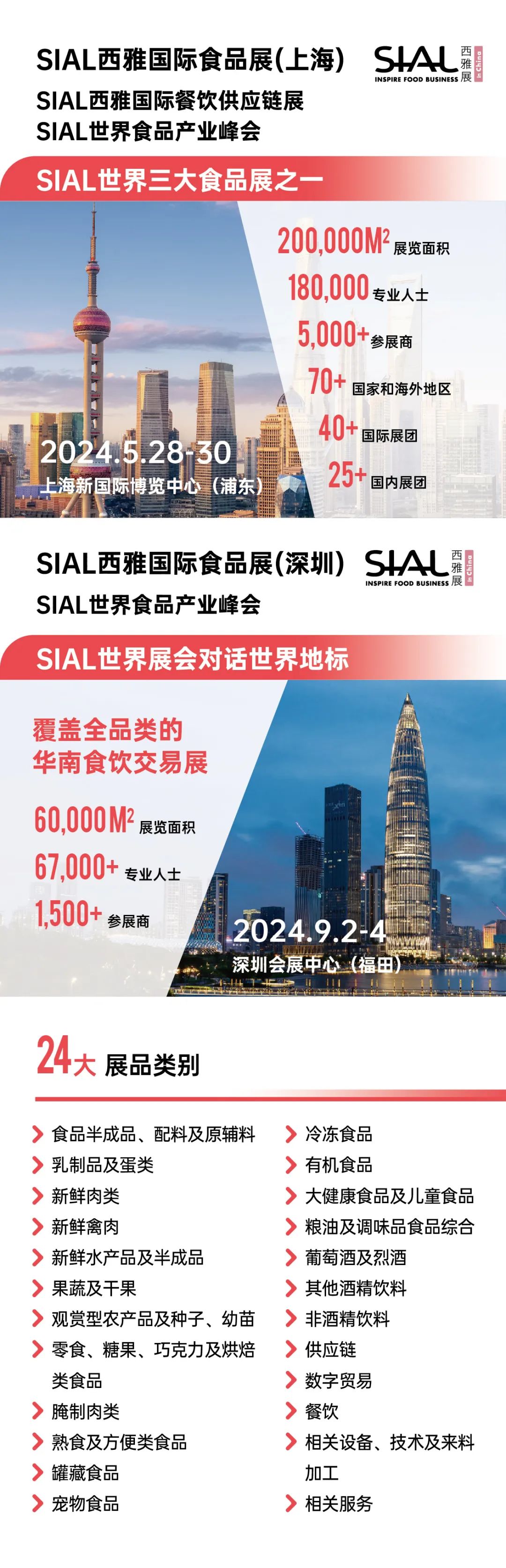 2024年5月28-30日,SIAL世界三大食品展之一的SIAL西雅展(上海)將于上海新國際博覽中心(浦東)舉辦;2024年9月2-4日,SIAL西雅展(深圳)將于深圳會展中心(福田)舉辦。雙展規模體量將再次全面超越往屆,未來無限,敬請期待。