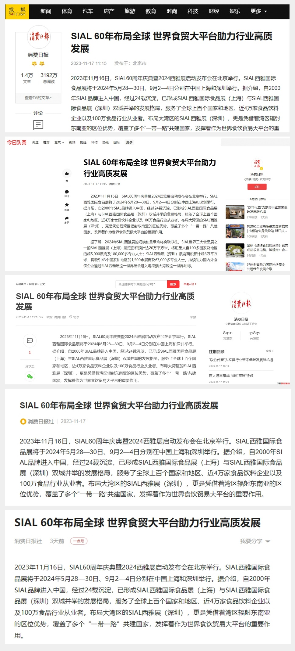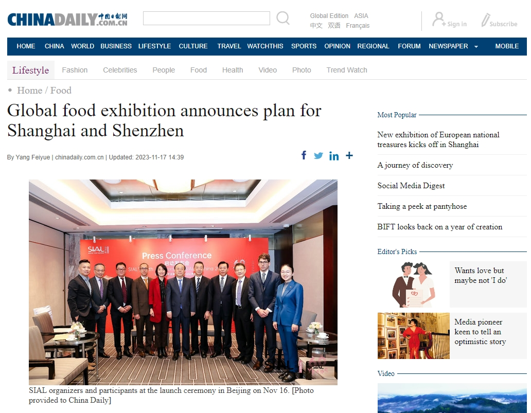 CHINA DAILY是國內最早開通網站的國家級媒體,日訪問量達到5200萬人次,現已成為國家級綜合性媒體網站和中國最具影響力的英文網站。作為“世界食品貿易溝通交流使者”,SIAL展放眼全球、深耕中國市場,不斷獲得CHINA DAILY等權威媒體的利好報道,也逐漸成為中國食品對外貿易的一張“重要名片”。